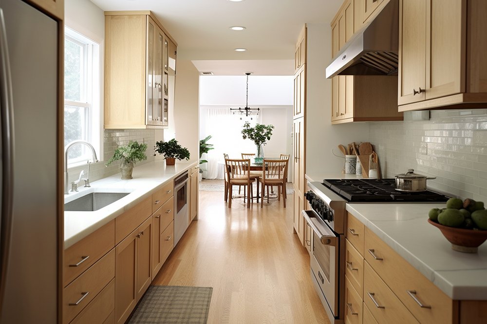 The Parallel kitchen is known as the most efficient design used in modern homes and professional kitchens. Featuring two long counters opposite each other, this layout ensures everything is within reach—making cooking quicker and more organized.