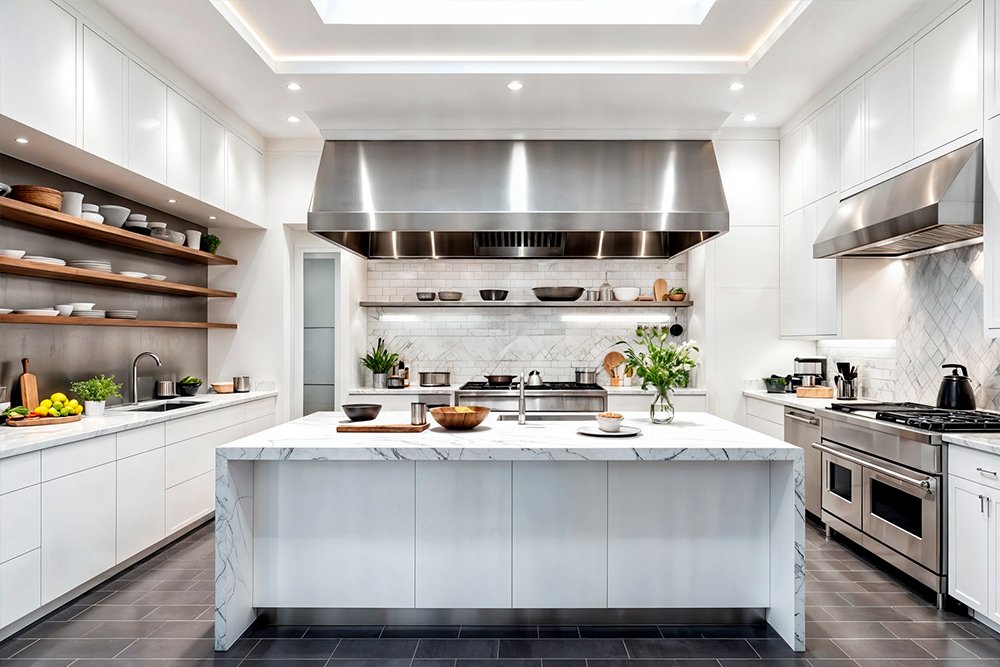 The U-shaped kitchen is the ultimate choice for homeowners who want maximum storage, comfort, and organization. Built along three connecting walls, it offers extensive cabinet space, multiple workstations, and a clear separation of cooking, cleaning, and preparation zones.